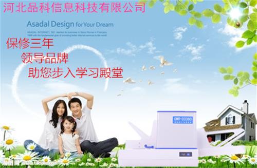 銀川是個好地方,河北品科信息科技有限公司在銀川推出新款閱讀機D3360.  產品的適用范圍:國內外的考試測評,志愿統計,考試報名,各行各業的干部的測評,考試,選舉。 產品優點:速度8級可調,閱讀速度更快,更準確。第三代機器相比第二代機器采用更穩定的軟件架構和更強的硬件芯片。得以保障更快、更準、更穩. 售后服務:1.首次購買品科考試閱讀機,我們承諾上門服務,給客戶詳細講解機器和軟件的使用,調整,對機器的簡單維修和保修方面的知識。 2.可以提供效率高快捷的光標閱卷機上門租賃服務,我們根據客戶的具體要求,制定專用的軟件及服務計劃,給客戶提供上門服務,效率高快捷的幫助客戶完成需要統計的數據或是考試、考核項目。 3.我們公司銷售的光標閱讀機均可以提供應急備用機。即在客戶購買我的機器后如果需要在某次大型活動、考試中使用,我們會根據客戶要求提供1臺或多臺備用機,給客戶保證順利完成任務,備用機在保修期內是不收取費用的! 維修服務:我公司技術人員可送貨上門,給用戶進行使用指導和技術培訓。產品保修3年,保修內容包括機器損壞的任何配件,均可發回原廠進行維修翻新,使用時間可延續10年之久! 我公司產品均為兩種連接方式:USB口和COM口(串口連接),可滿足各種臺式和筆記本電腦,并且我們產品的軟件均可在Windows 98以上的系統中運行!